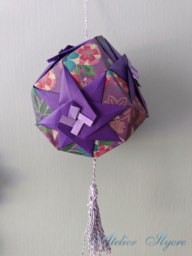 You can understand why this type of model is called a faceted cube! Also, the main face units folded from 15cm squares stand out a bit more than the patterns, so be sure to select a nice base colour when doing this yourself!