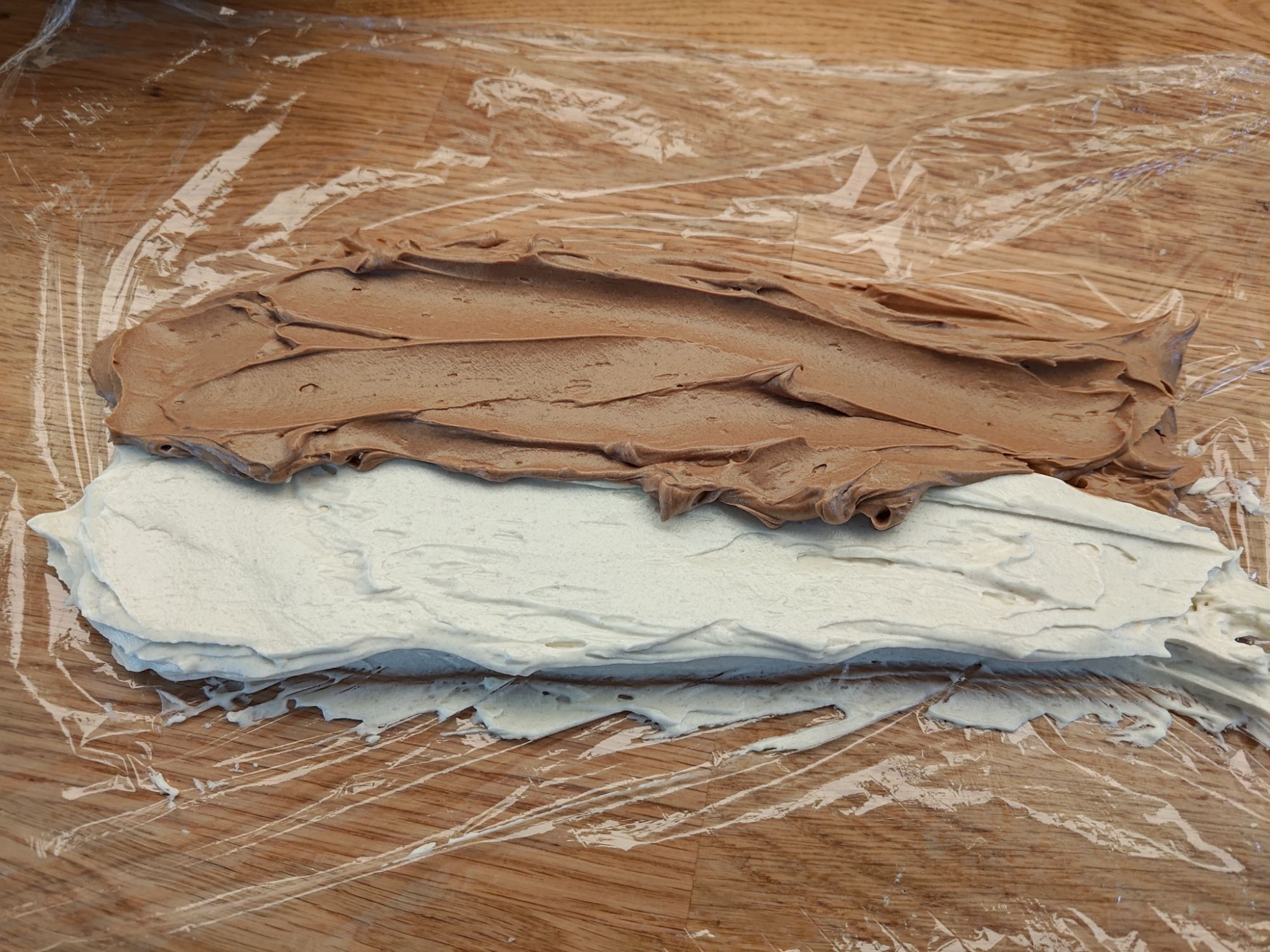 The buttercream was a difficult process for me… I found that the mixture would curdle or become too runny at different times. This involved me having to constantly warm up the mixture or put it in the fridge to cool. In the end, I had to add a tiny bit of icing sugar to stabilise it and give it a little firmness. I added three tablespoons maple syrup for flavouring and crumb-coated the cake overnight. The next day, I added brown food colouring to stored buttercream in two stages for different colours, whilst reserving a small amount for the yellow food colouring.