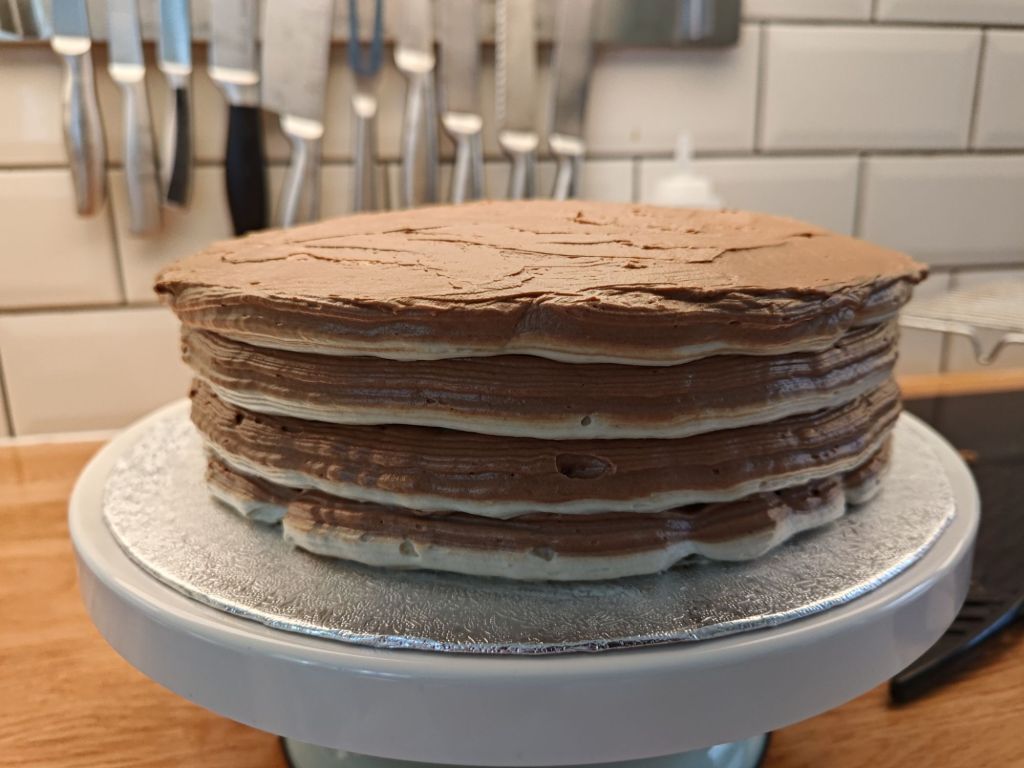 Baking the cake was pretty straightforward. I used the stated amount but adapted it for three layers instead of two. I also did not find premade buttermilk so I made an alternative from milk combined with lemon juice. I slightly levelled the layers using a wire cake leveller when cooled. I did not take any pictures for the first few steps as it is pretty standard cake-making process!