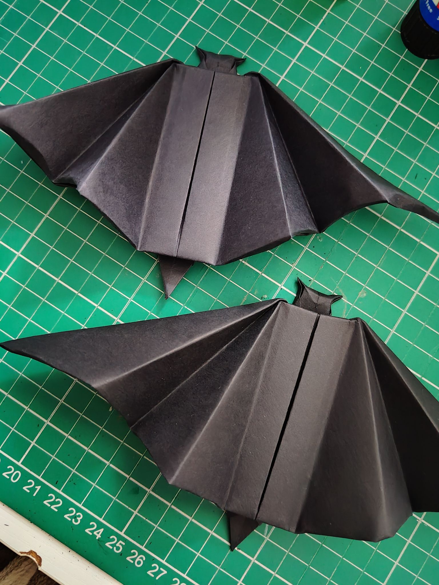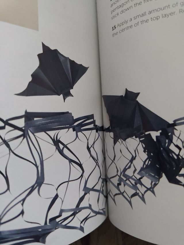I also made two bats from the square paper. It does convey the bat silhouette quite well, however the instructions were a little confusing and hard to follow in the book. I was able to figure out the intention by trying to match the images, as the explanations were not very good.