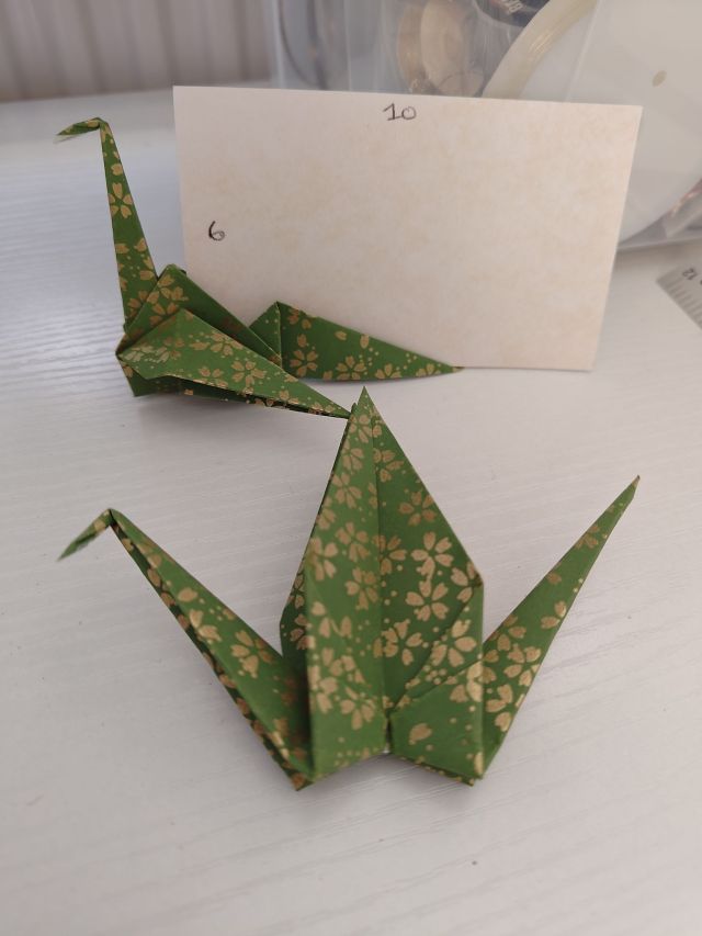 I found that it was quite easy to get the whole lot done once I got my labelling system going. Although this only makes up a small part of my wedding, I hope it adds a nice personal touch for the guests when they sit down. I also packed away the regular cranes for now but I will most likely return to them at a later point.