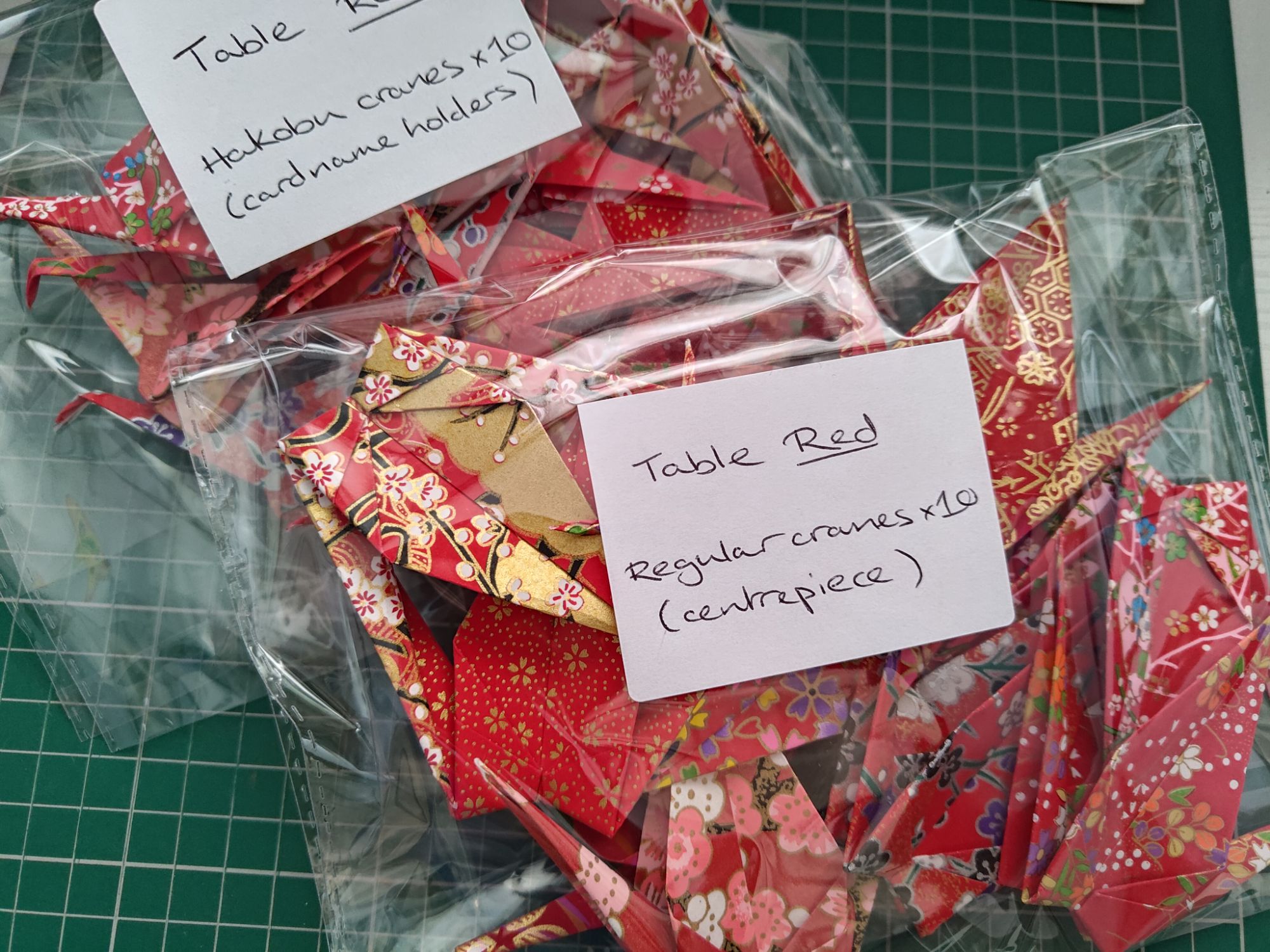 I found that it was quite easy to get the whole lot done once I got my labelling system going. Although this only makes up a small part of my wedding, I hope it adds a nice personal touch for the guests when they sit down. I also packed away the regular cranes for now but I will most likely return to them at a later point.
