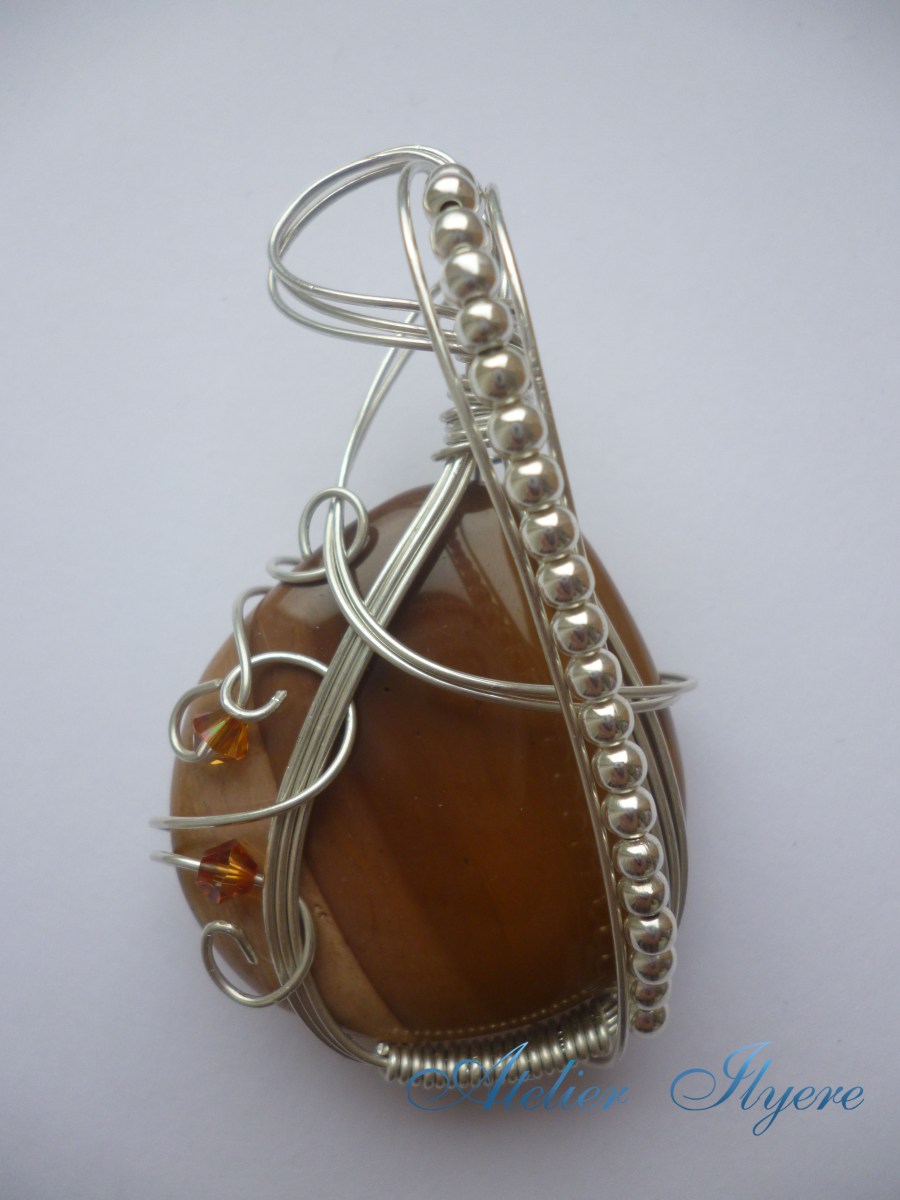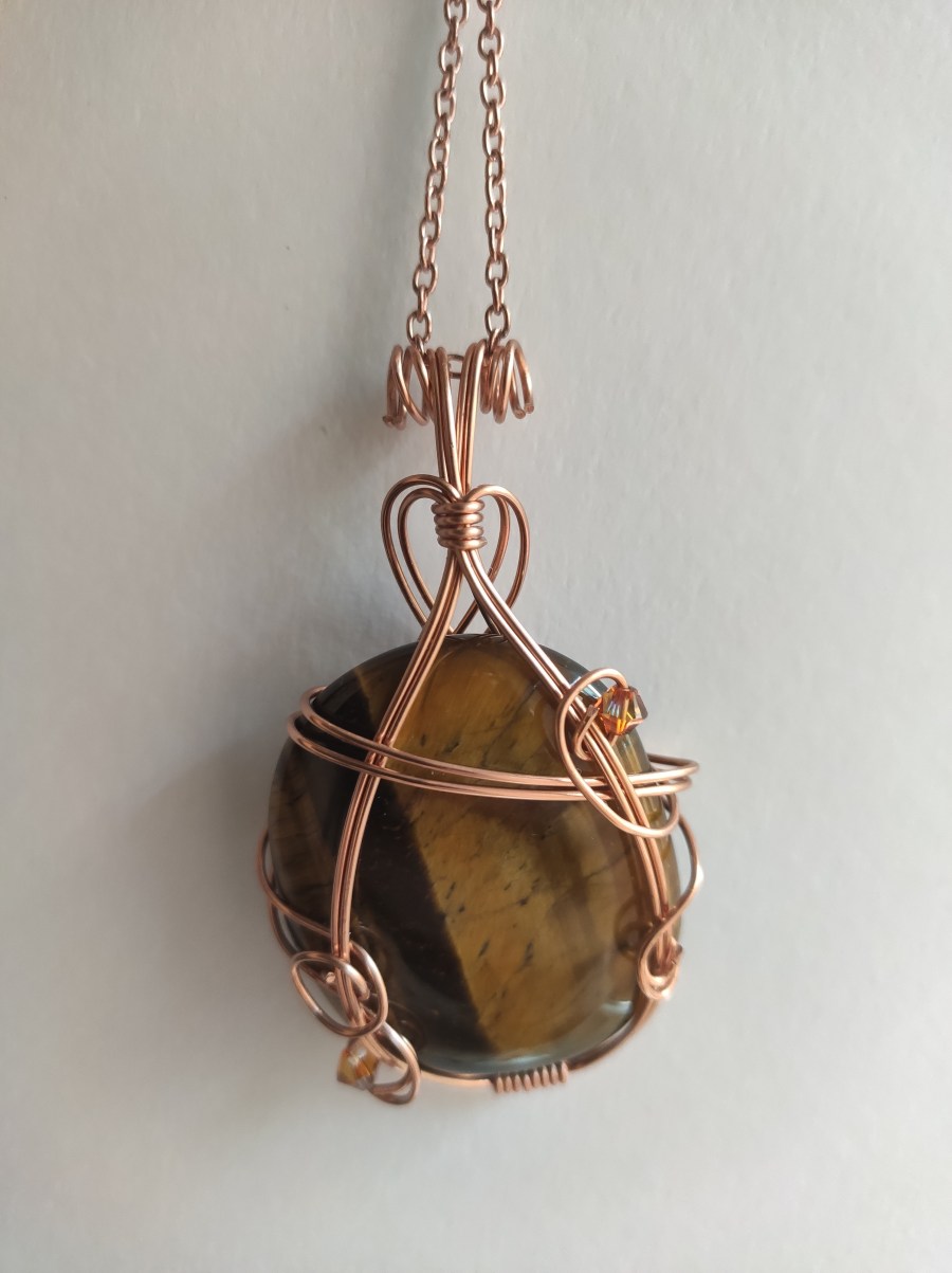 A wire-wrapped Tiger's Eye cabochon pendant.